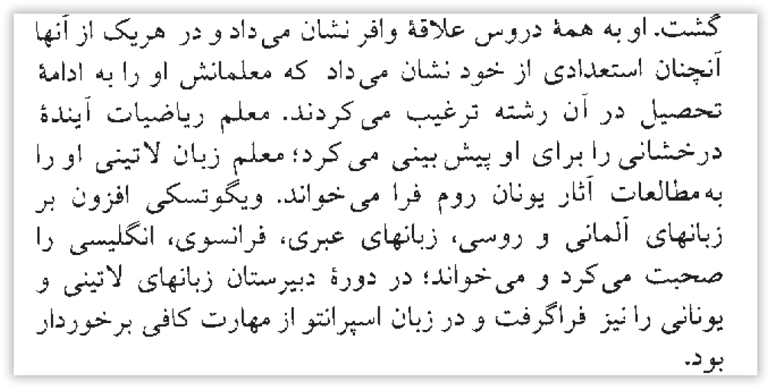📋 ویگوتسکی در زبان اسپرانتو از مهارت کافی برخوردار بود .