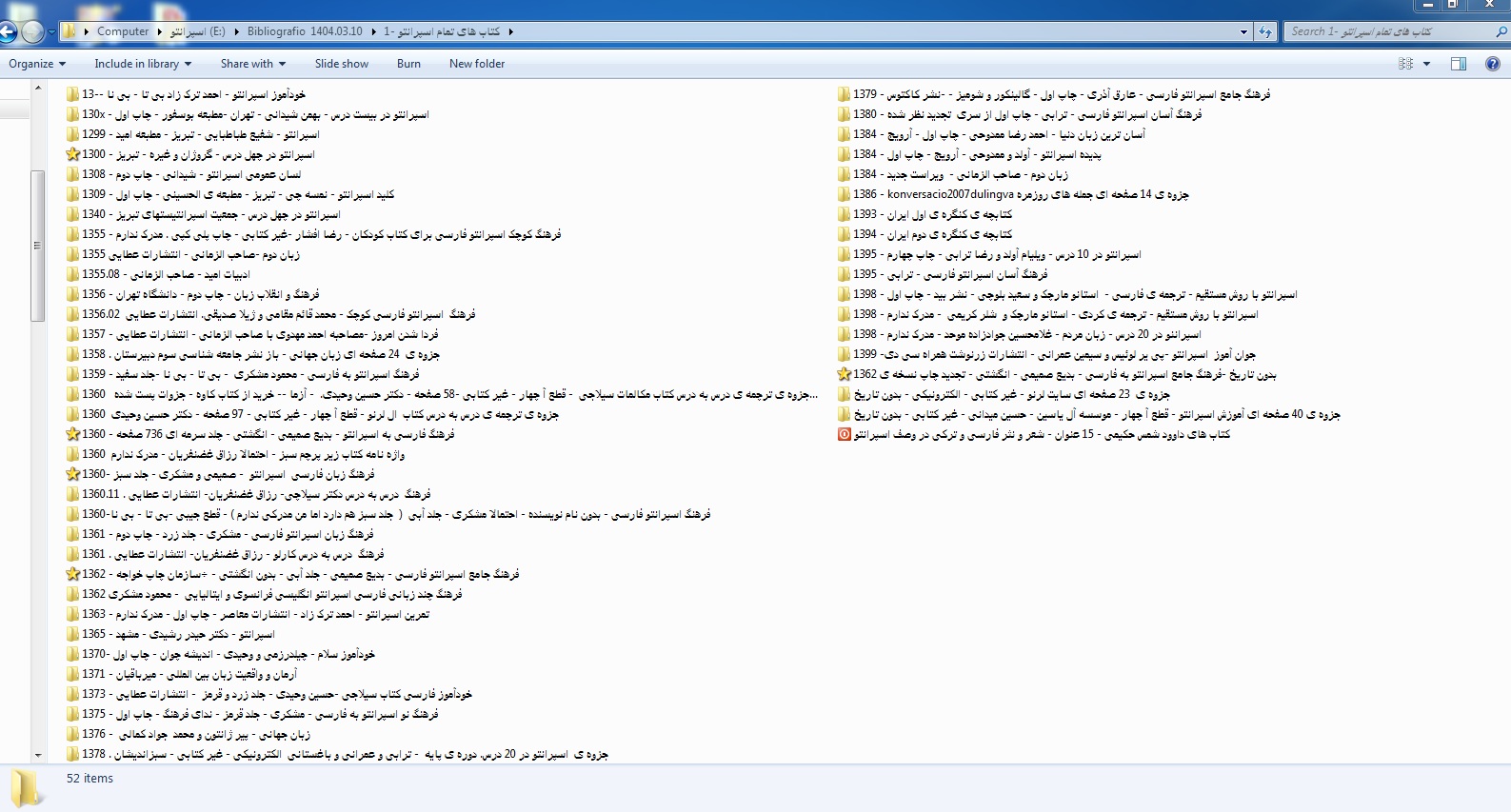 📚 اسکرین شات از منابع گروه یک از مجموعه کتاب شناسی اسپرانتو .