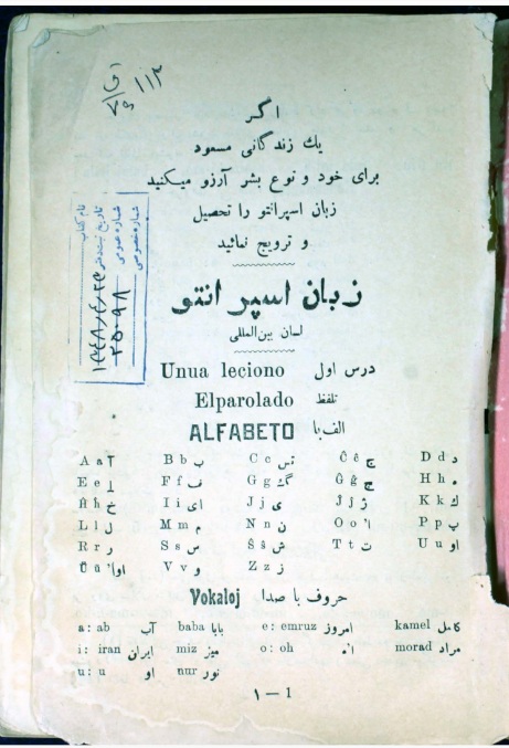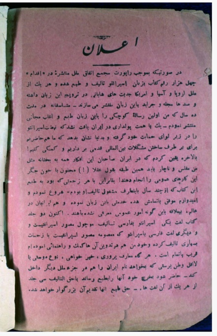۱ – کتاب لغت اسپرانتو به فارسی تالیف موچول مصور رحمانی