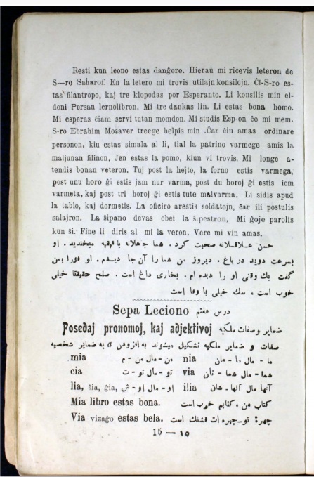 ۵ – بخش سوم قرار بود حاوی اشعار ، خواندنیها و داستان هایی باشد که به صورت مستقیم به زبان اسپرانتو توسط اسپرانتودانان ایرانی تالیف شده بود .
