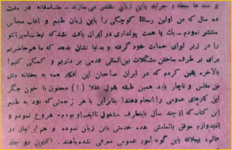 ⭐️ مقدمه ای از بهمن شیدانی که در این صفحه و دو خط باقی مانده ی آن در صفحه ی متناظر ( صفحه ی داخلی پشت جلد ) منتشر شده است .