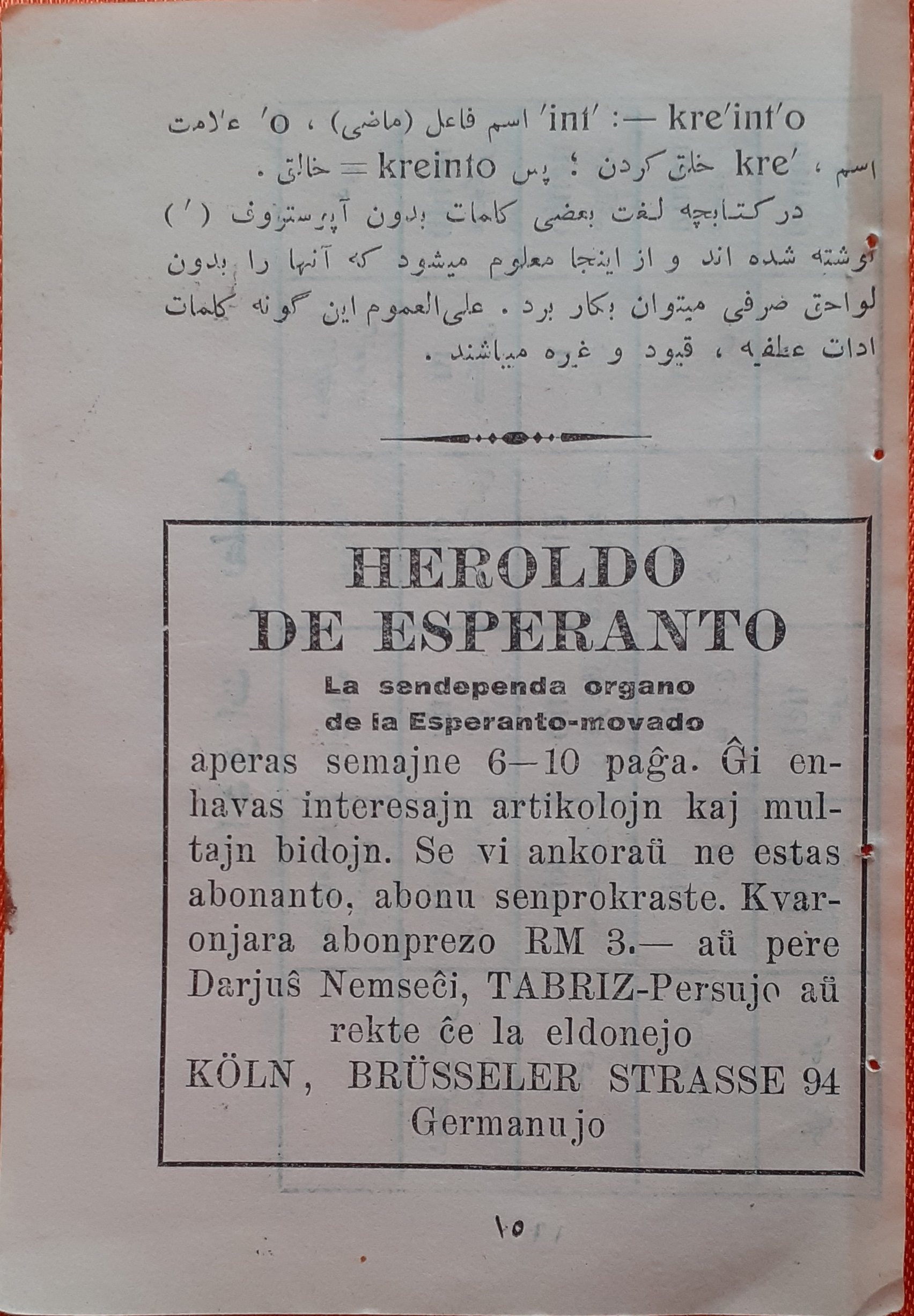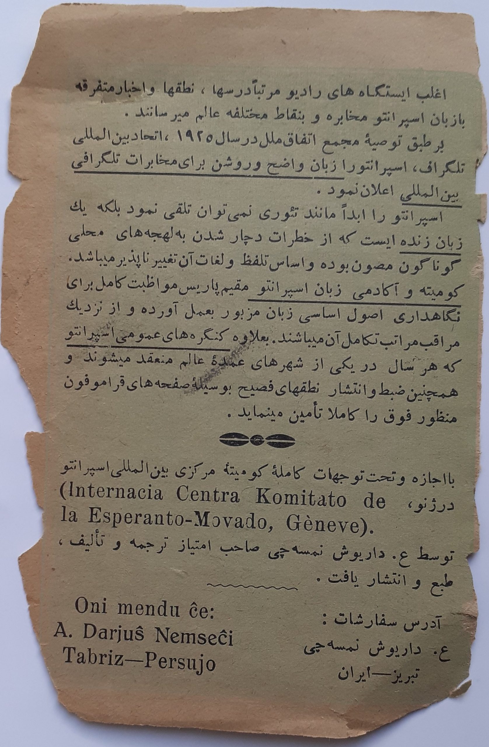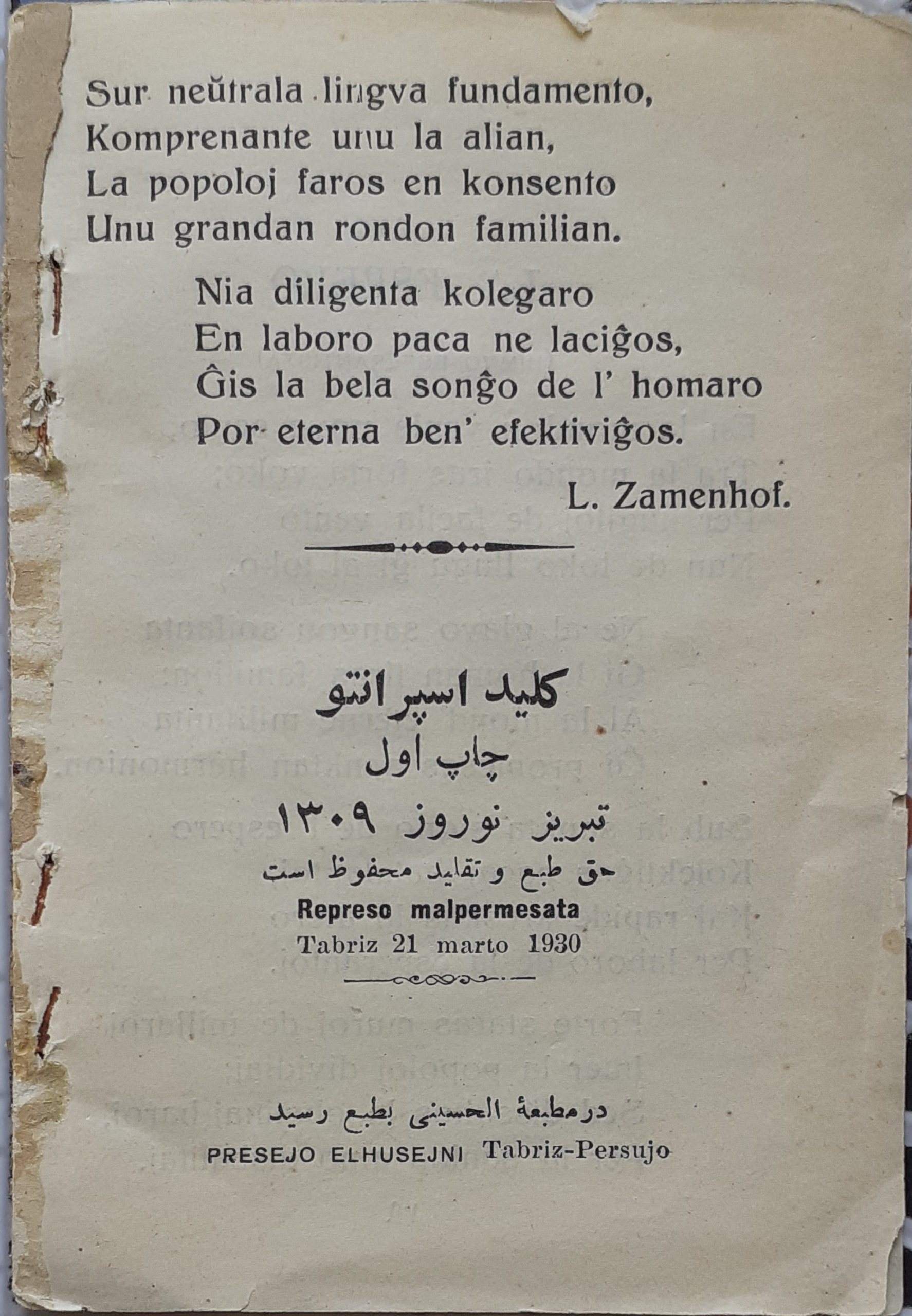 🙏 با سپاس فراوان از آقای حمزه شفیعی و انجمن اسپرانتوی ایران که این کتابچه را در اختیارم نهاد .