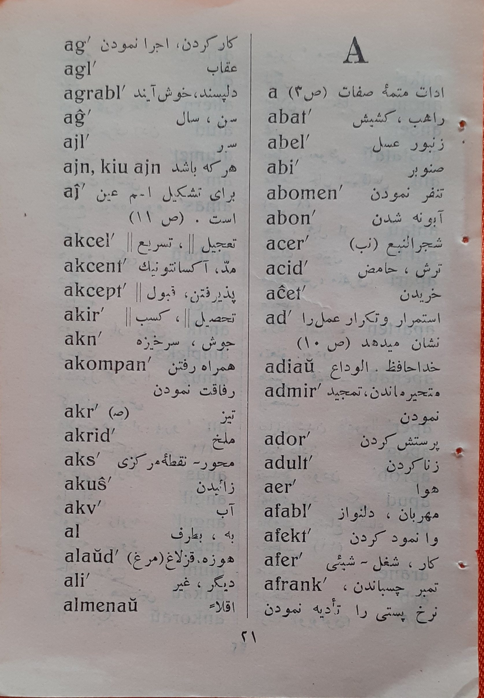 آغاز بخش واژه نامه ی کتاب