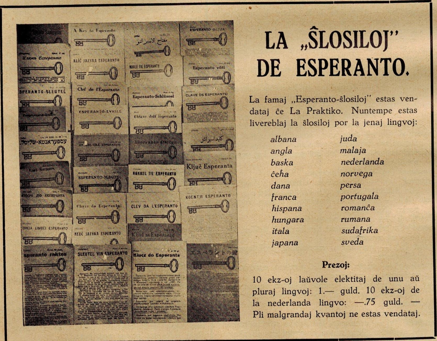 تصویری از ترجمه های مختلف کتابچه ی کلید اسپرانتو به زبان های گوناگون .