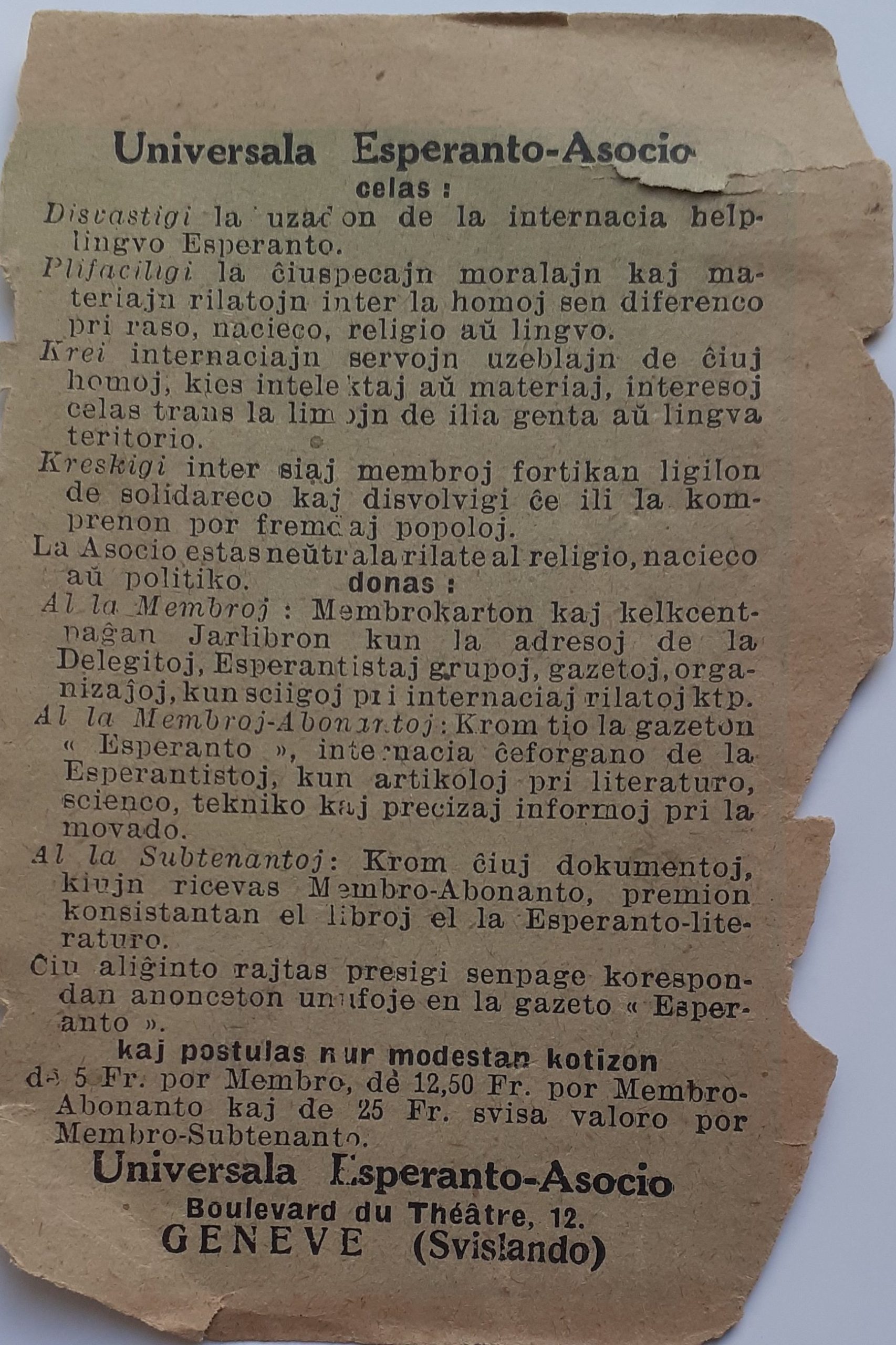 توضیحاتی چند درباره انجمن جهانی اسپرانتو UEA در سوییس ، اهداف آن وچگونگی و مبلغ عضویت برای اعضای عادی و حامی .