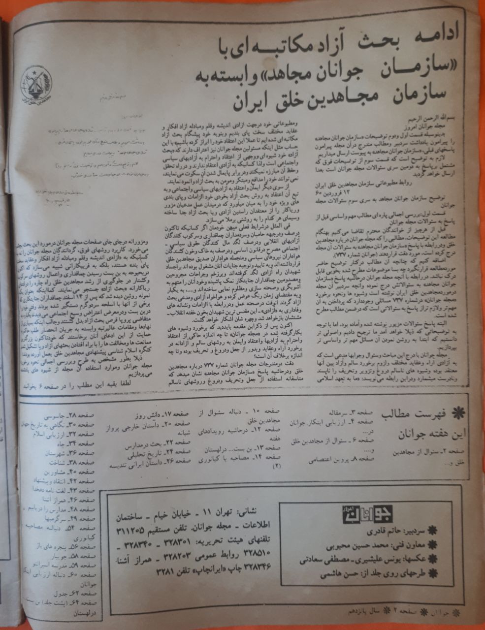 مجله ی جوانان امروز . ش ۷۳۸ . دوشنبه ۱۷ فروردین ۱۳۶۰ .