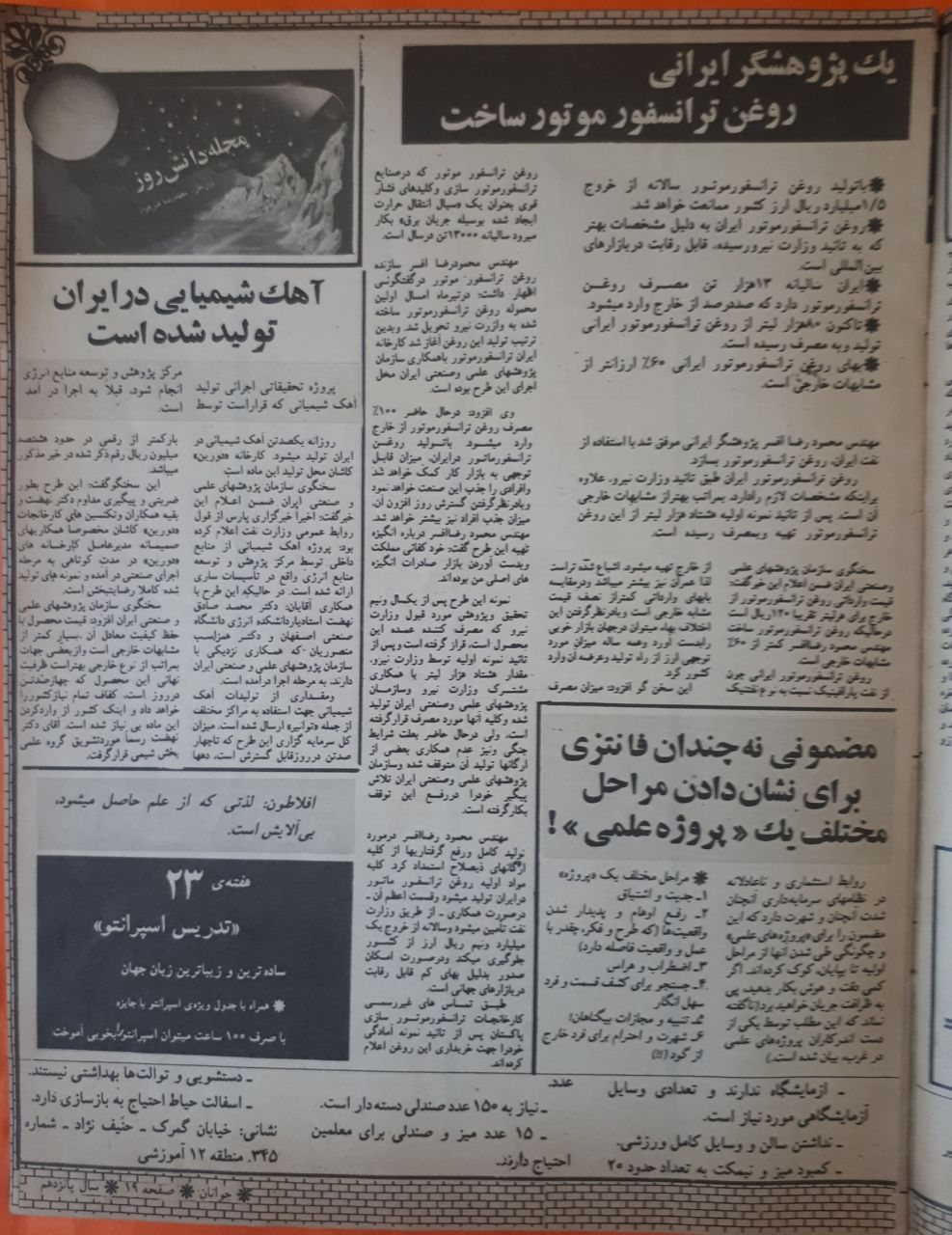 بریده ای از مجله ی جوانان امروز . ش ۷۳۸ . دوشنبه ۱۷ فروردین ۱۳۶۰ . ص ۱۹ . دانش روز . تبلیغ هفته ی ۲۳