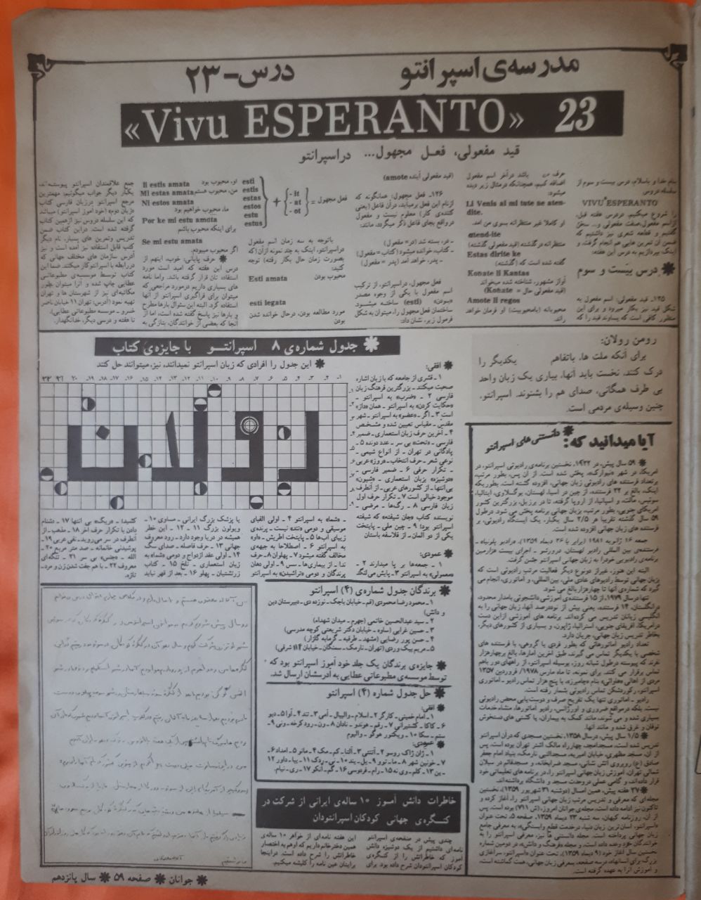 بریده ای از مجله ی جوانان امروز .ش ۷۳۸ . دوشنبه ۱۷ فروردین ۱۳۶۰ . ص ۵۹ . مدرسه ی اسپرانتو . قسمت ۲۳ .