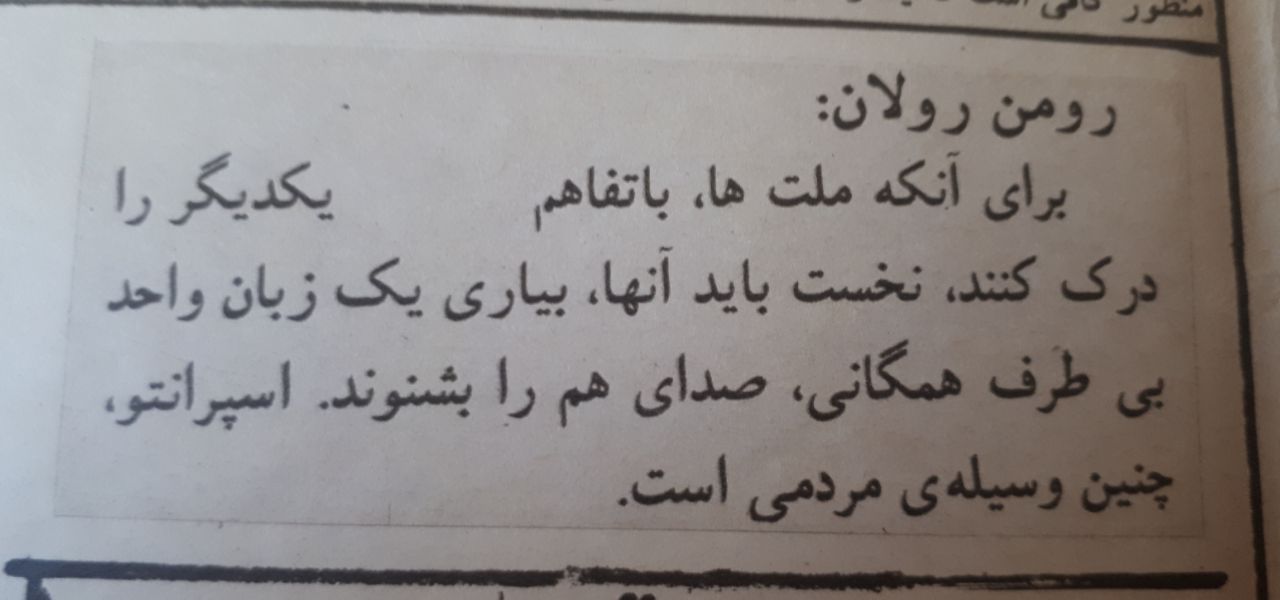 دوشنبه ۱۷ فروردین ۱۳۶۰ . ص ۵۹ . مدرسه ی اسپرانتو . قسمت ۲۳ 📖 سخنی از رومن رولان درباره ی زبان اسپرانتو .