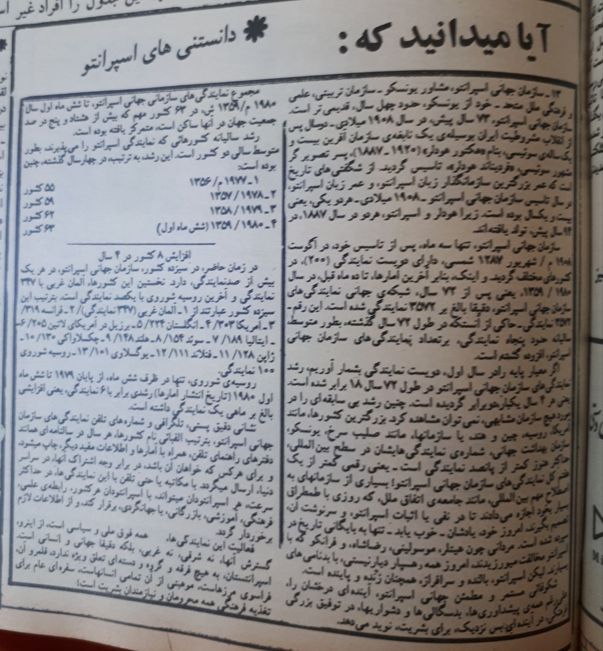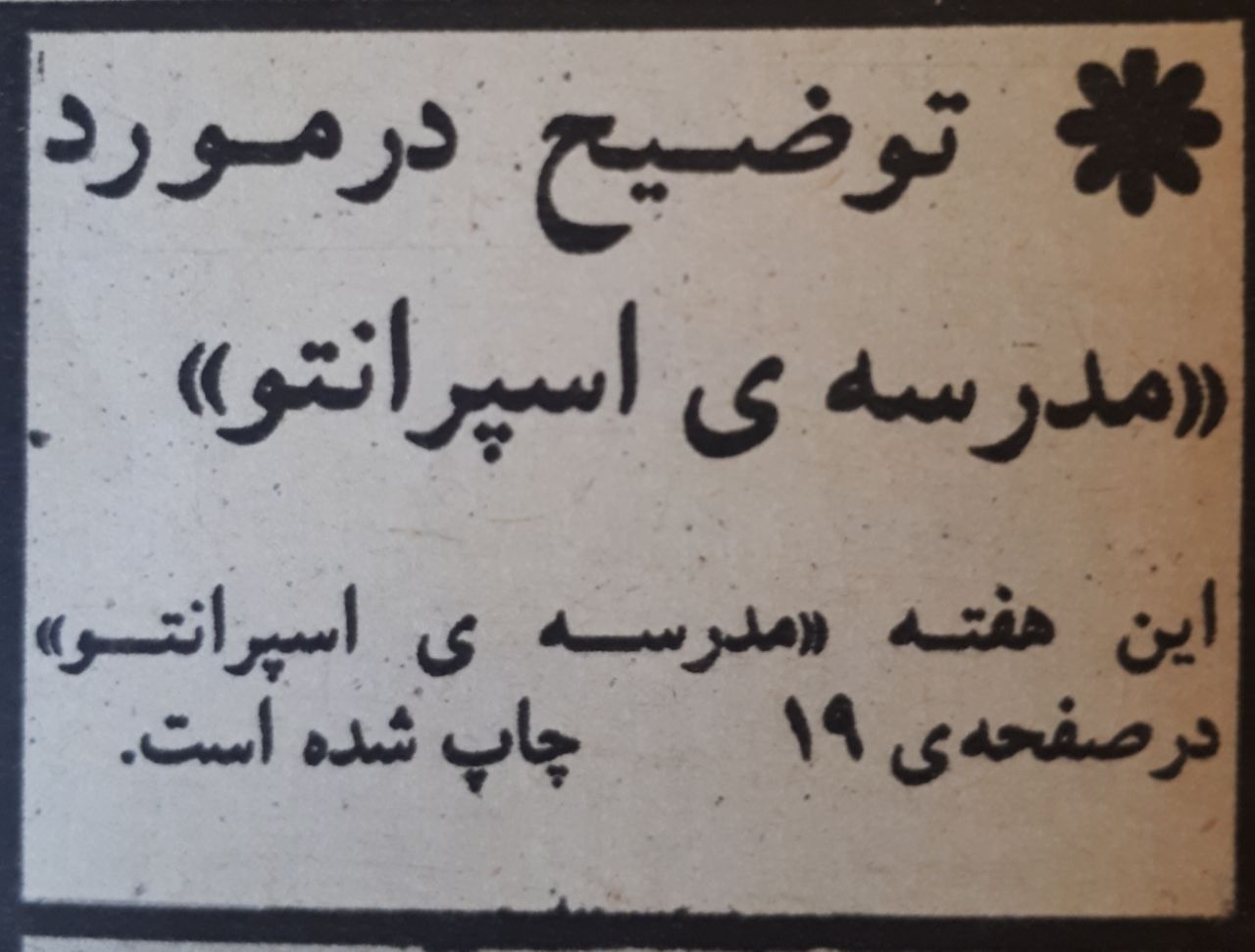 در زیر فهرست ، توضیح داده شده که این هفته مدرسه ی اسپرانتو در صفحه ی ۱۹ چاپ شده است .