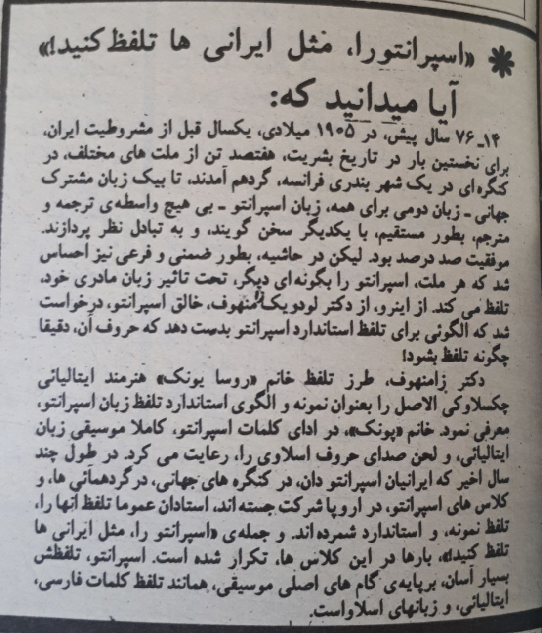 🌷 تایید تلفظ خانم روسا یونک ایتالیایی به توسط زامنهوف
