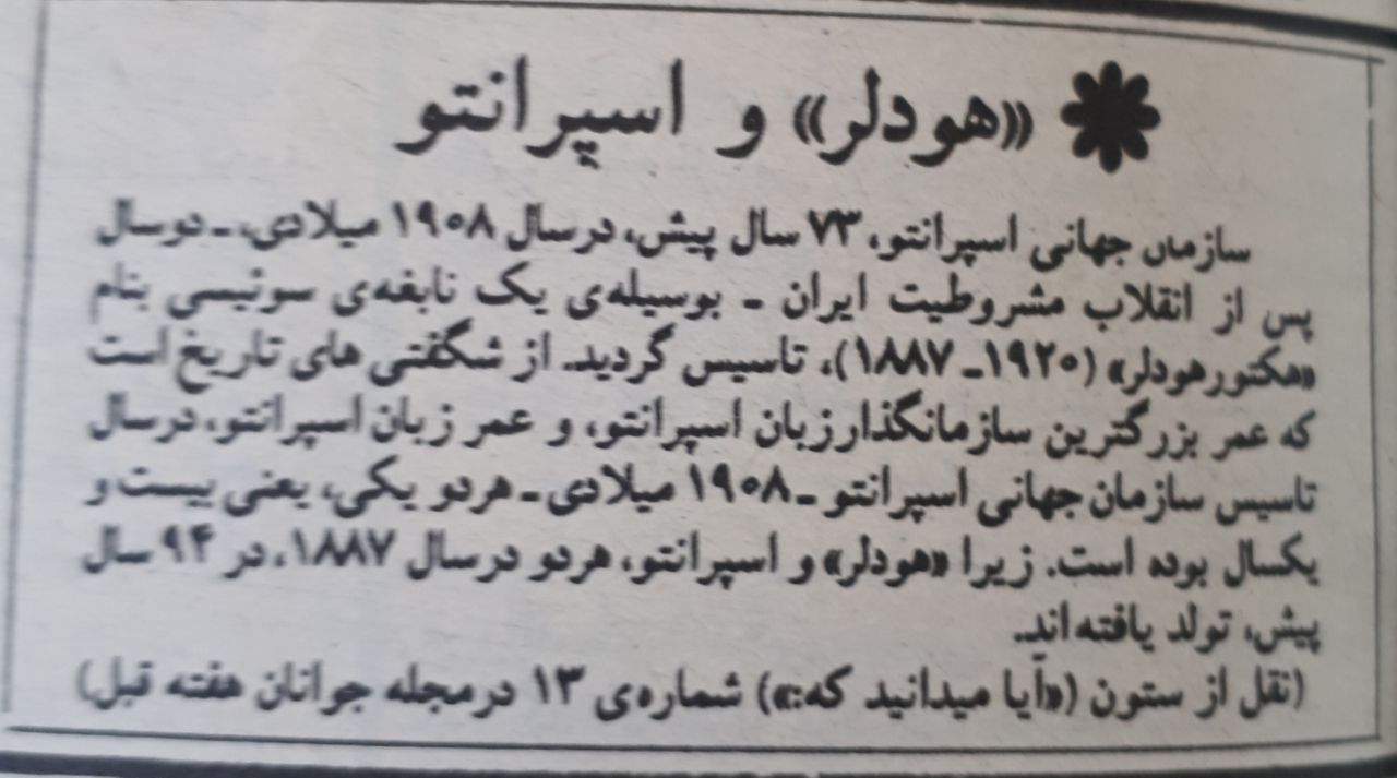 ⭐️ تاسیس سازمان جهانی اسپرانتو توسط هکتور هولدر در سال 1908