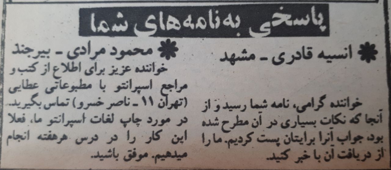 ✉️ پاسخ به نامه های خوانندگان صفحه ی مدرسه ی اسپرانتو .